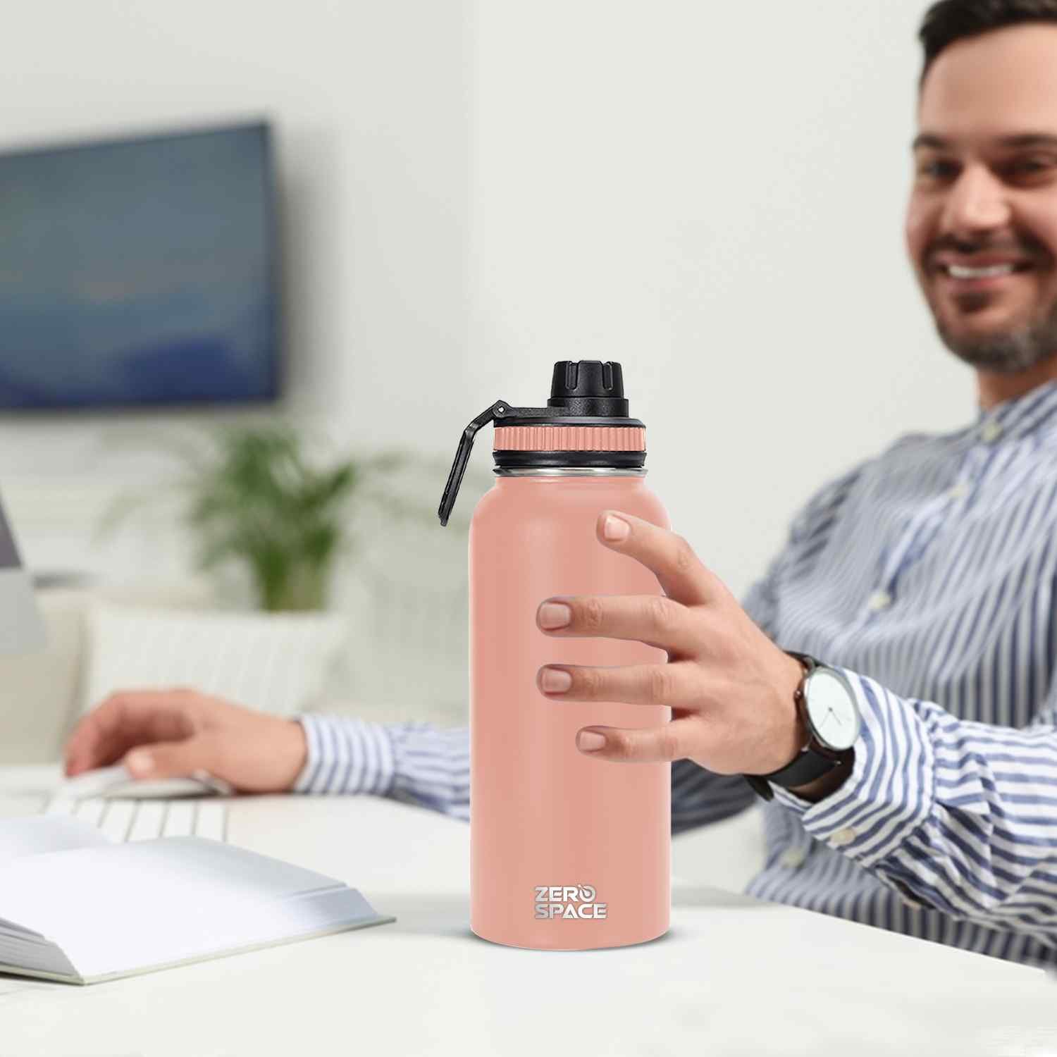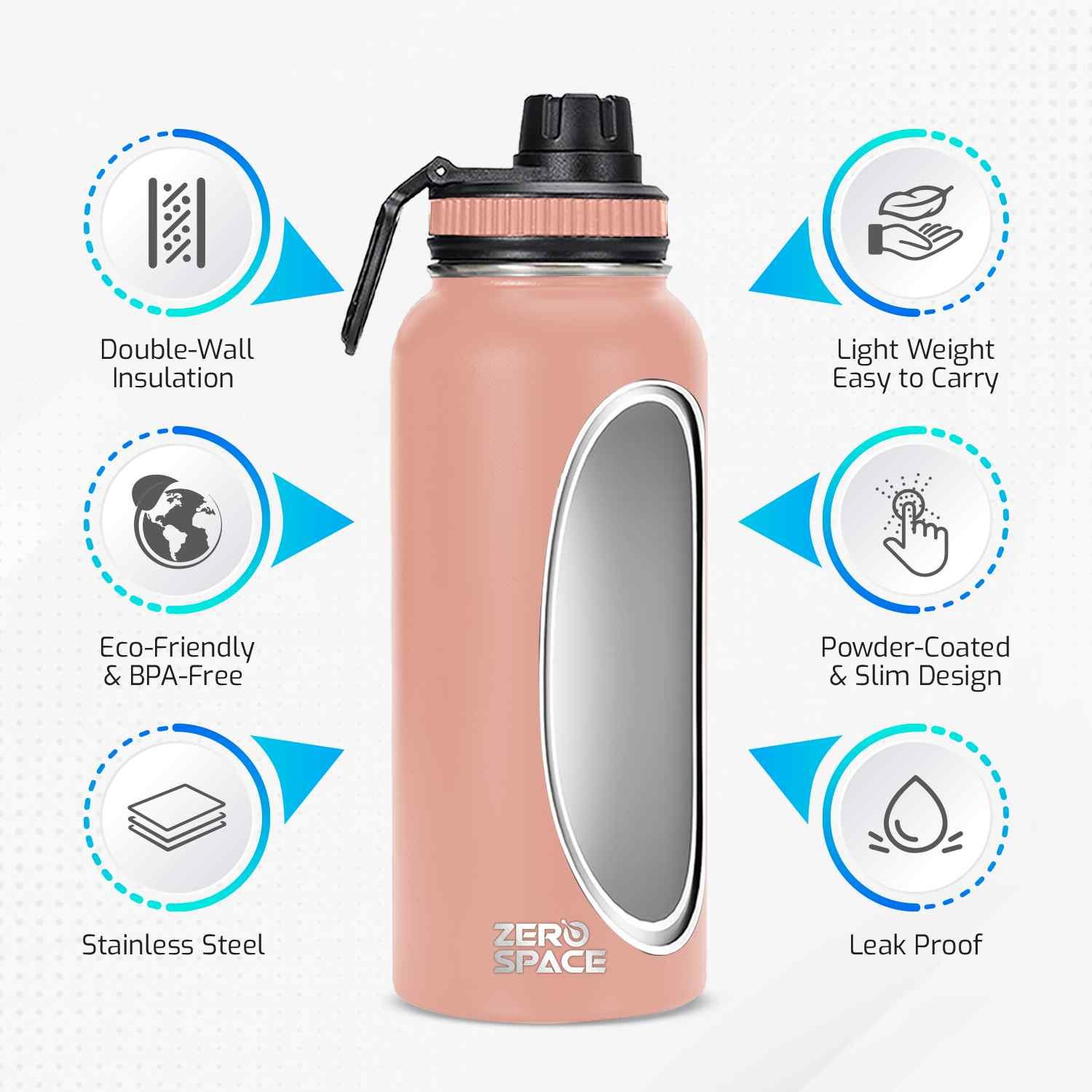 Add a touch of elegance to your hydration routine with the ZeroSpace 1-Liter Stainless Steel Water Bottle in Pink Color. This large-capacity, insulated bottle keeps your drinks cold for a full 24 hours or hot for 12 hours, making it perfect for work, travel, and fitness.