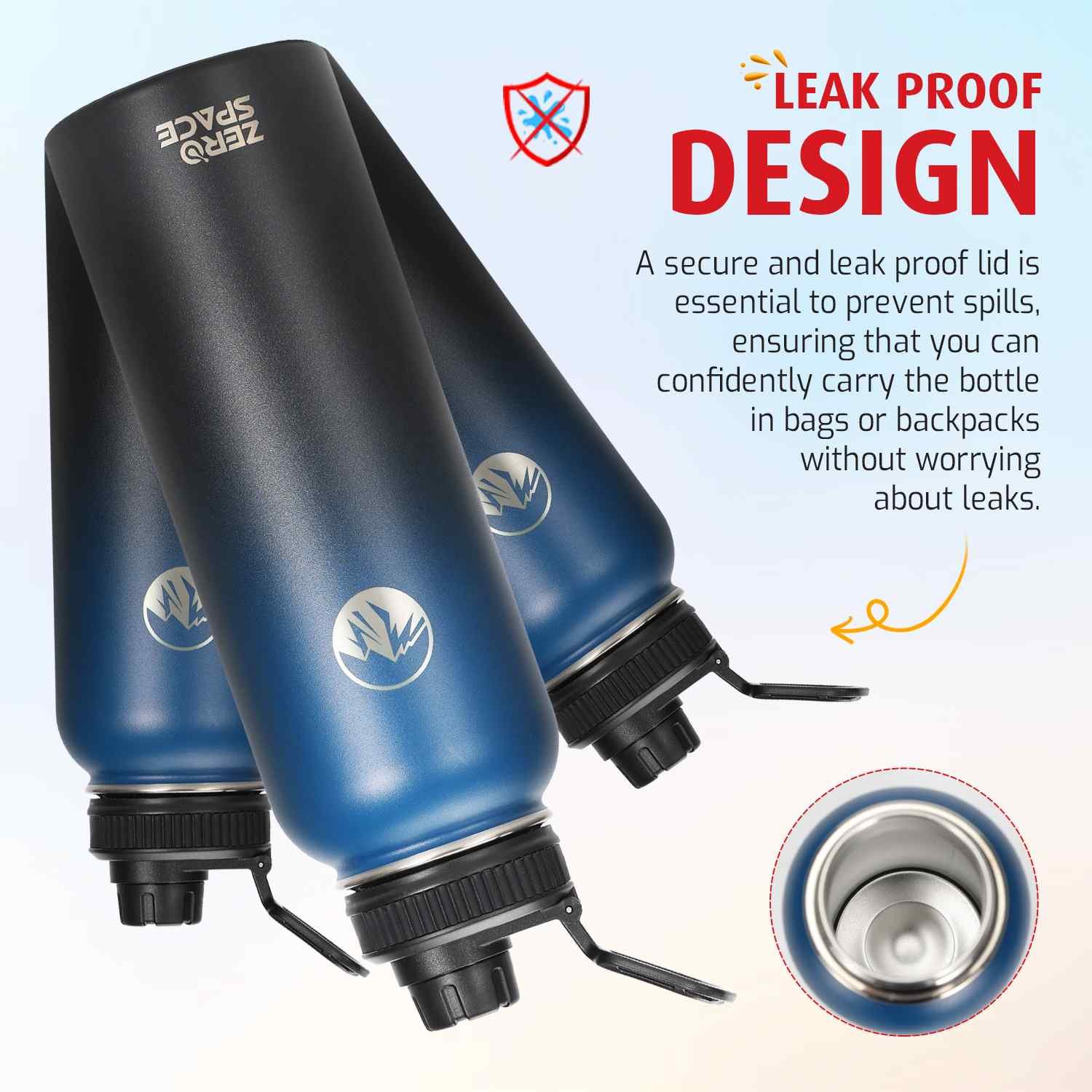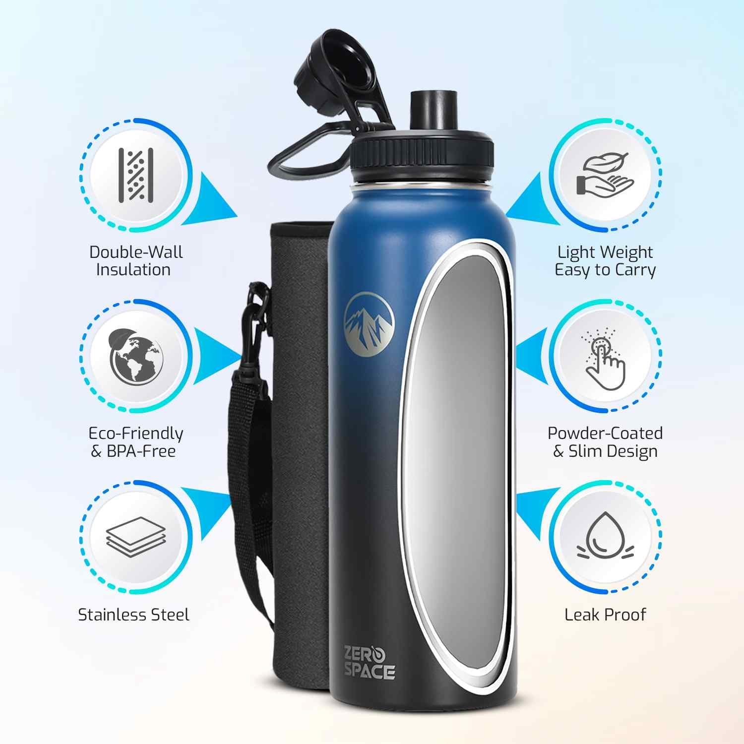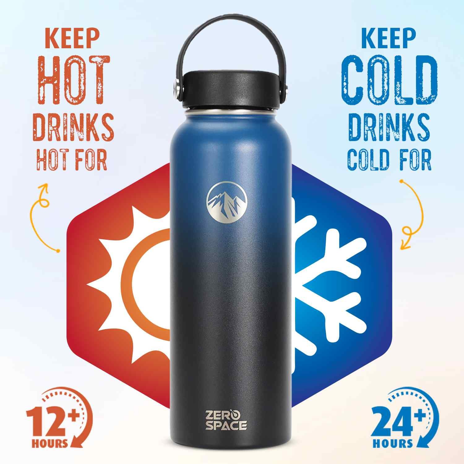 For those who prefer a modern look, the ZeroSpace Stainless Steel Water Bottle in Blue/Black color is the perfect choice. This bottle features a bold blue and black color combination, crafted from premium stainless steel that ensures optimal temperature control. Whether you need to keep your drinks hot for up to 12 hours or cold for 24 hours, this bottle delivers outstanding performance.