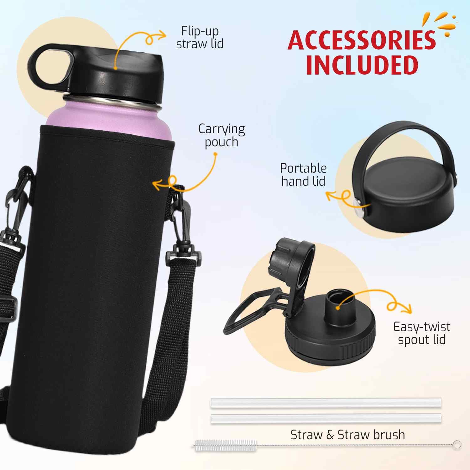 With three interchangeable lids and a protective sleeve, this water bottle is as functional as it is stylish. Stay hydrated in style with the Purple Gradient bottle. Order now and enjoy free UAE-wide delivery!