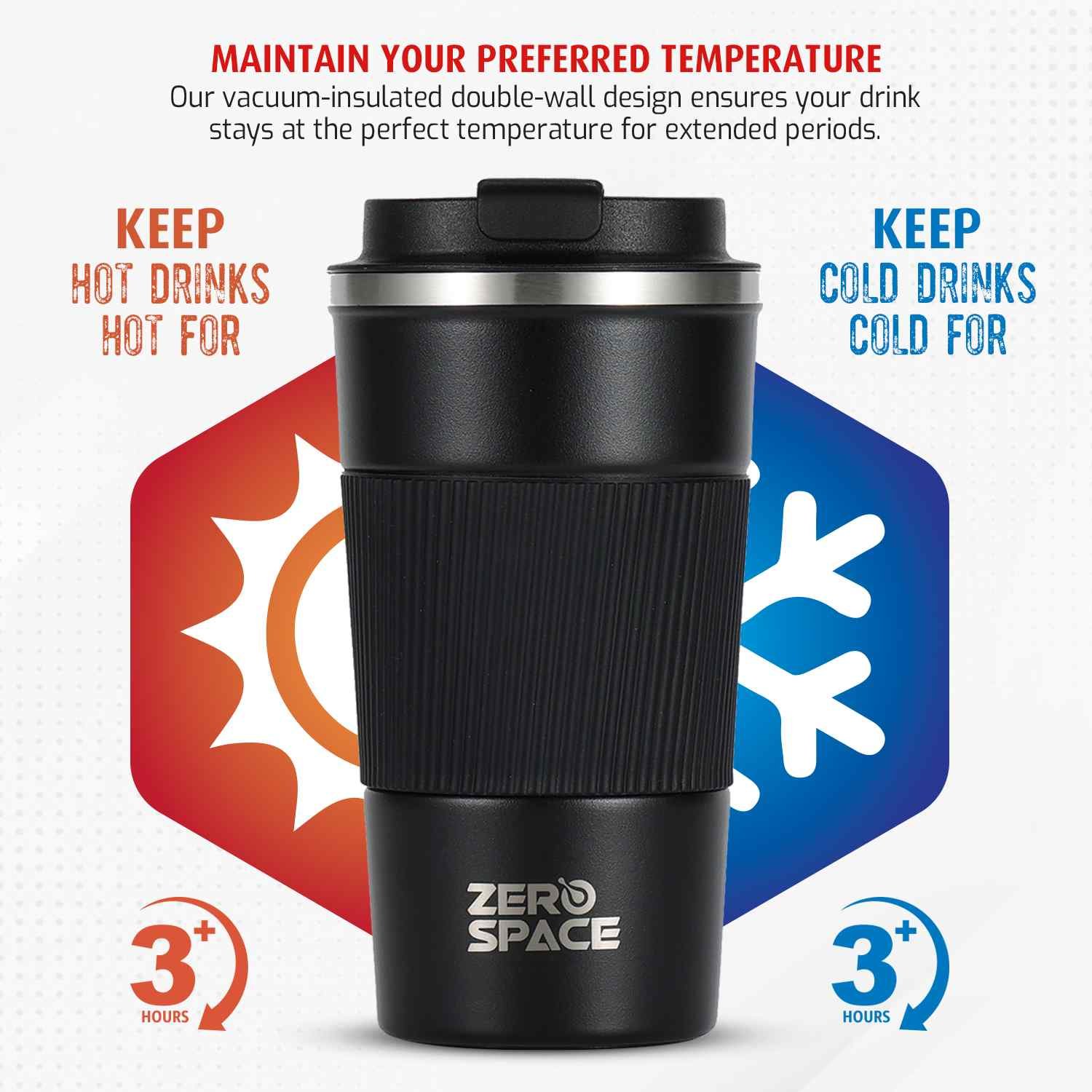 Sleek, stylish, and built for everyday durability, the ZeroSpace Black Stainless Steel Coffee Mug is the perfect choice for professionals and coffee enthusiasts who value both function and aesthetics. With a timeless matte black finish, this mug exudes sophistication while keeping your beverages at the perfect temperature for hours. Thanks to advanced insulation technology, your coffee stays hot for up to 6 hours, and your cold drinks remain chilled for up to 12.