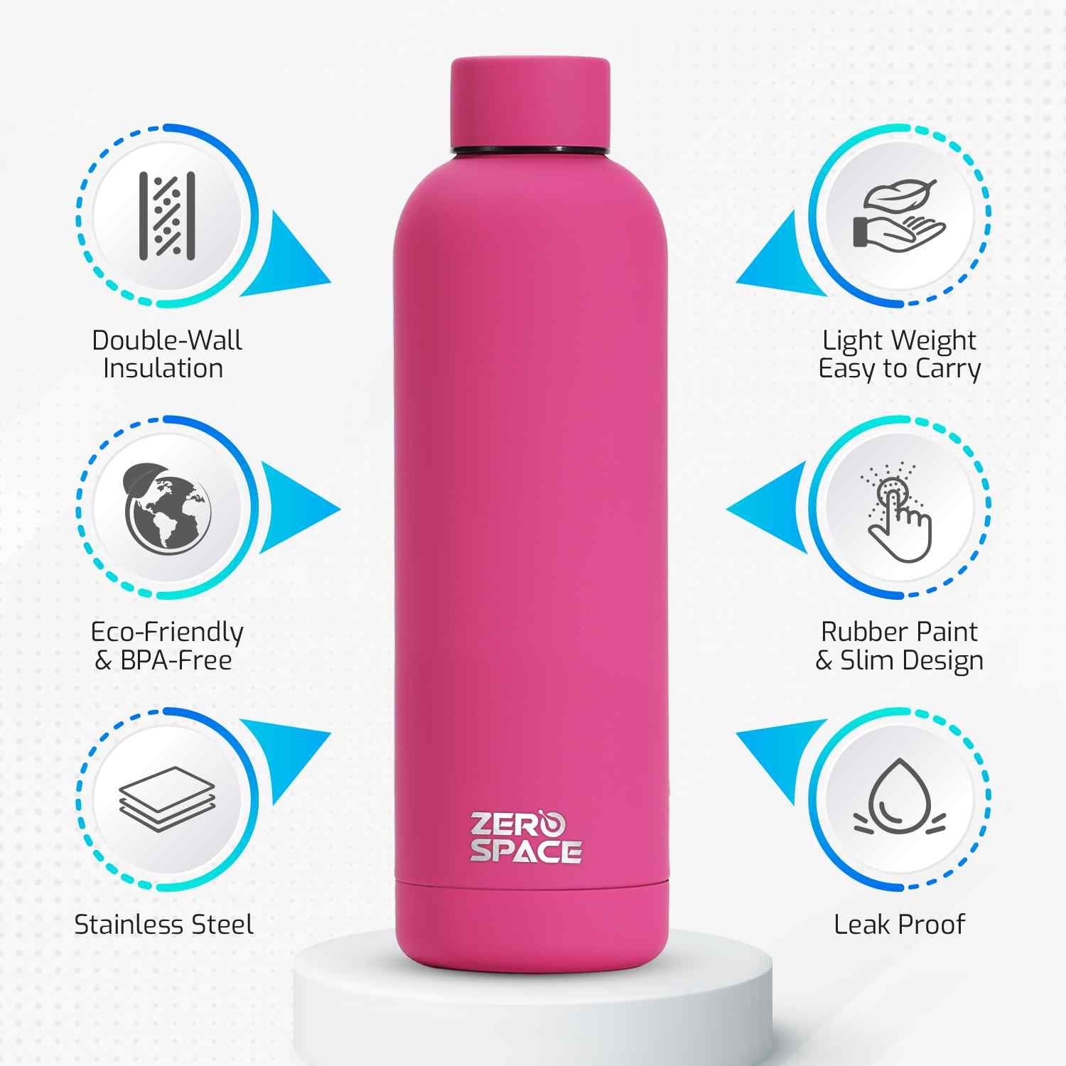 Stay stylish and hydrated with the ZeroSpace 750ml Vacuum Flask in Dark Pink Color. Crafted with premium double-wall insulation, this flask keeps your beverages cold for up to 24 hours and hot for 12 hours, offering reliable temperature retention for all-day hydration. Whether you’re on the go or at the office, its leak-proof, durable design ensures no spills, while the sleek dark pink finish adds a chic touch.